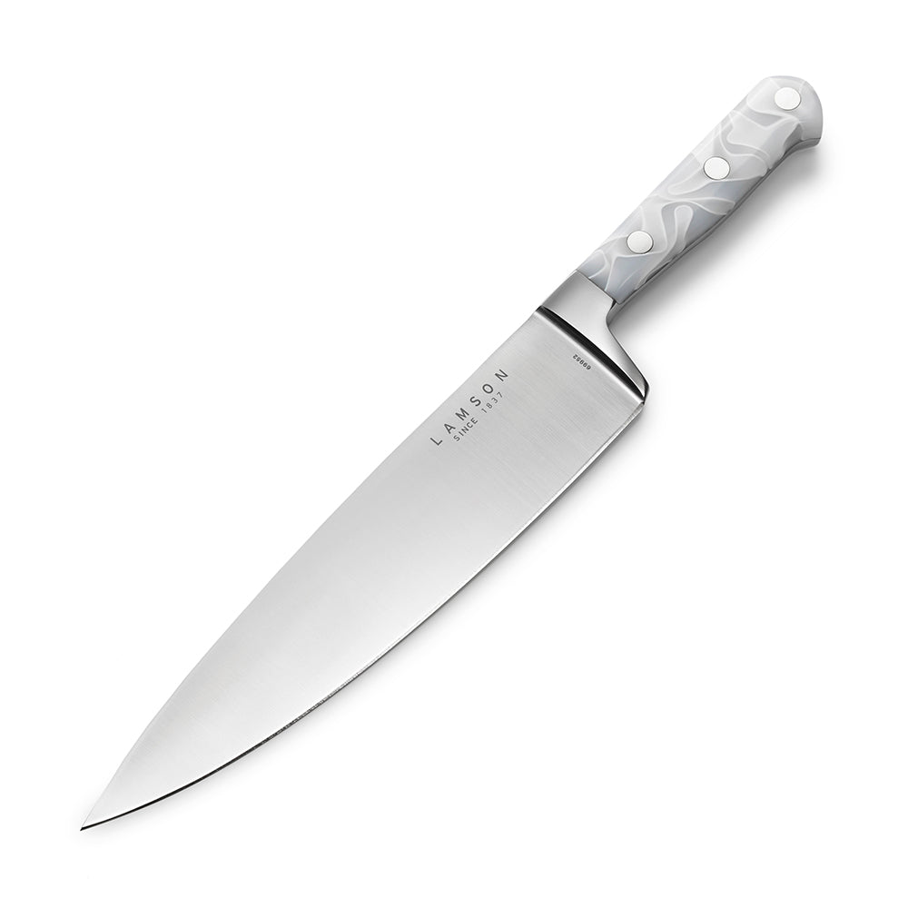 The Chef's Knife is the workhorse of the kitchen. Its broad blade dices, slices, and chops fruits, vegetables, and meats while protecting knuckles from hitting the cutting board.