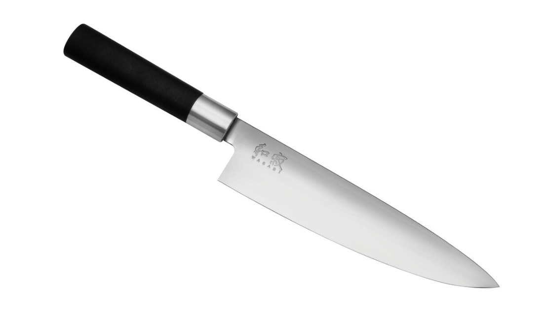 Our 8-Inch Chefs Knife is a beautiful, all-purpose knife that youll use again and again. As with all our Wasabi Black knives, your chefs knife is made with Daido 1K6 high-carbon, stainless steel for superior edge retention, and embellished with the Japanese characters for "wasabi". Our Wasabi line of knives features traditional Japanese blade styling, and our 8-inch Chefs knife is no exception. This Chefs Knife features superior cutting performance and to reduce food sticking, the blades are sharpened on a single side. Although it has a traditional blade-style, it is paired with a uniquely modern handle material, polypropylene blended with bamboo powder, and impregnated with an antibacterial agent for super clean food preparation. Japanese style chefs knife, multi purpose knife used for slicing, dicing and general kitchen prep Made with Daido 1K6 high-carbon, stainless steel for superior edge retention Embellished with the japanese character for wasabi Blades are bead-blasted to an attractive finish, handle is sturdy, clean polypropylene blend Hand wash only; limited lifetime warranty, made in Japan
