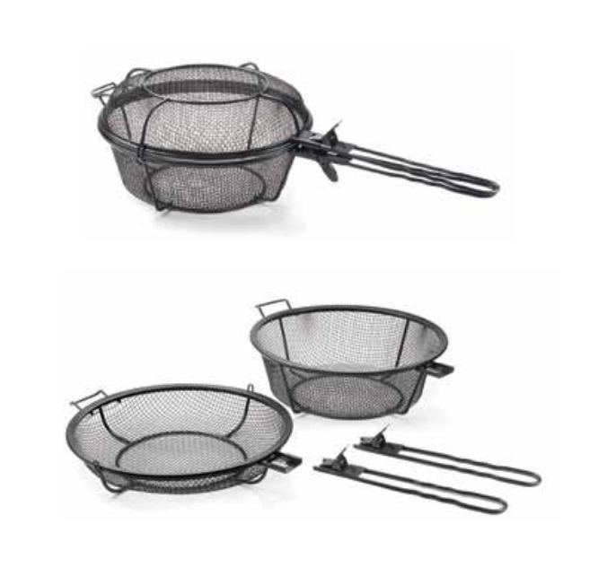 Take your sides to the grill without worrying about them falling through grill grates. With the Stainless Steel Jumbo Grill Basket and Skillet, you can fill plates with full flavor all from one basket. The mesh design of the basket promotes smoky, seared flavors, a signature feature of grill top cooking. This basket also features removable handles, allowing full closure of the grill lid . Helper handles also make transporting easy.
