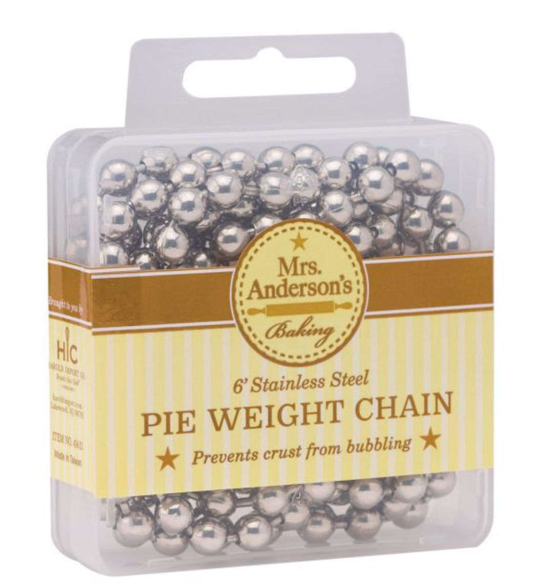 • Mrs. Andersons Pie Weight Chain bakes empty pie shells, known as blind baking, without them shrinking, bubbling or buckling