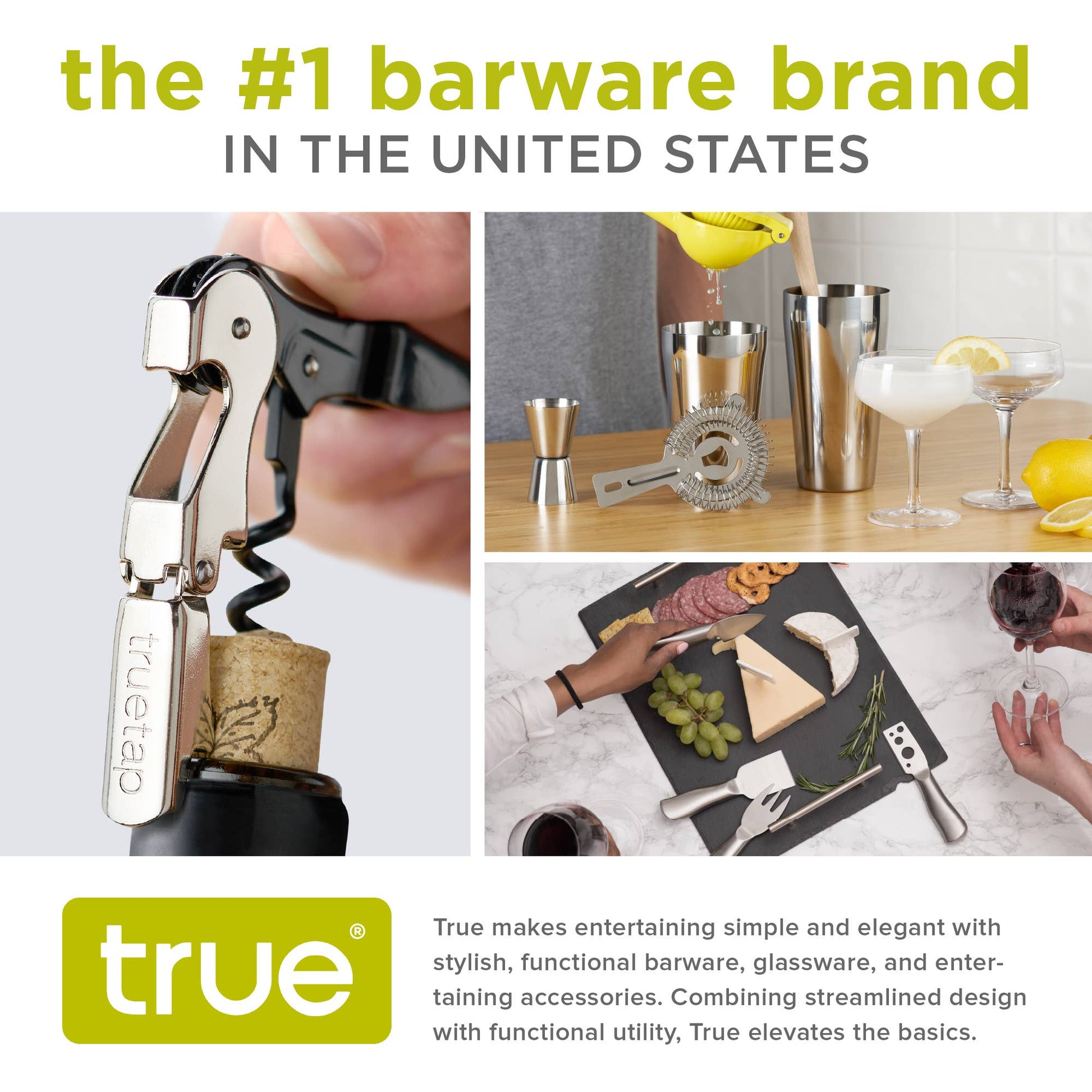 True makes entertaining simple and elegant with a wide variety of fun, practical serveware, dishes, barware, and cocktail accessories. Discover bar accessories like corkscrews, cocktail shakers, flasks, muddlers, and shot glasses, or wine tools like champagne stoppers, decanters, wine aerators, and wine glasses. True even makes modern cheese boards and cheese knives for the perfect charcuterie board to complete a happy hour spread. Combining streamlined design with functional utility, True elevates the basics.