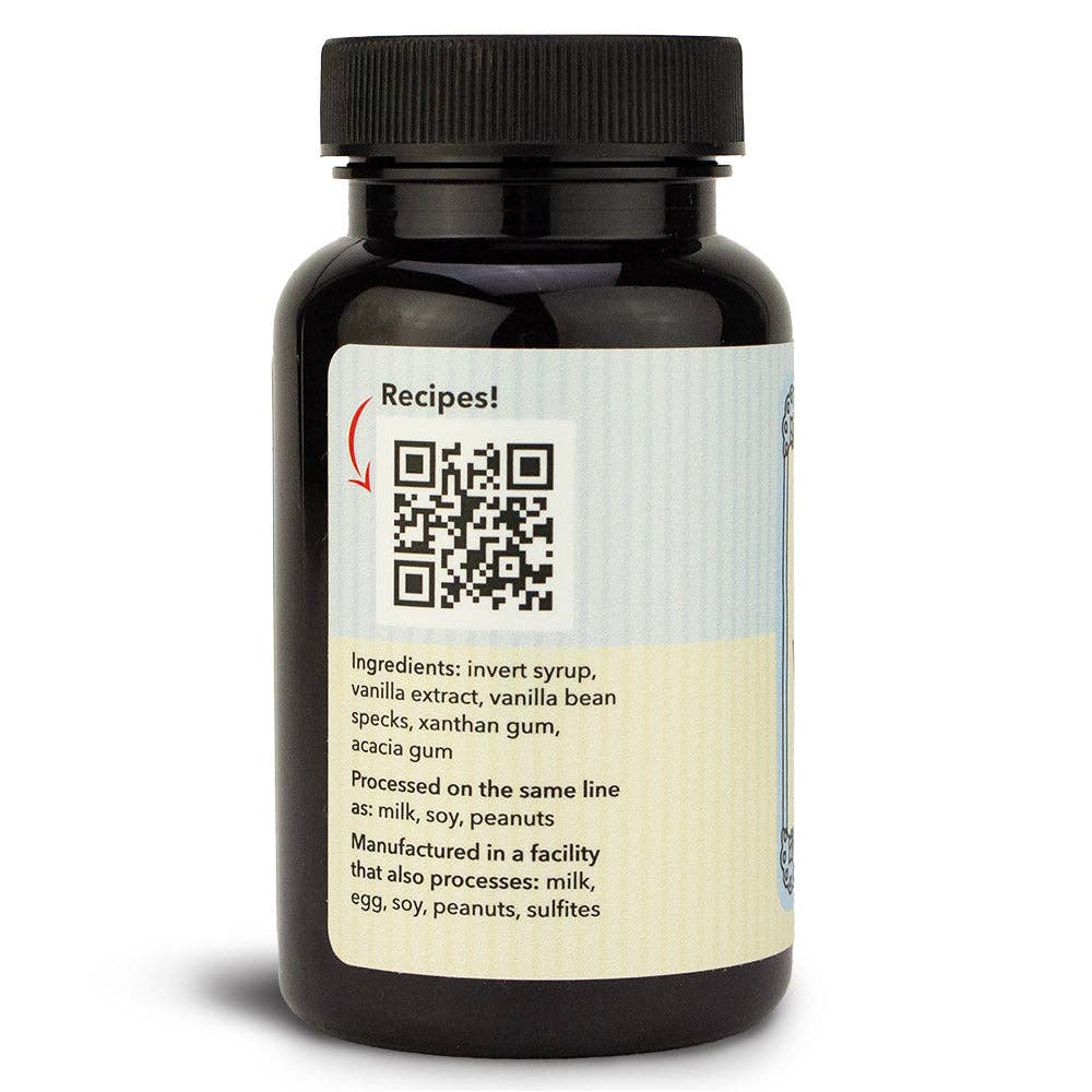 Ingredients: Invert syrup, vanilla extract, vanilla bean specks, xanthan gum, acacia gum. Processed on the same line as: milk, soy, peanuts. Manufactured in a facility that also processes: milk, egg, soy, peanuts, sulfites