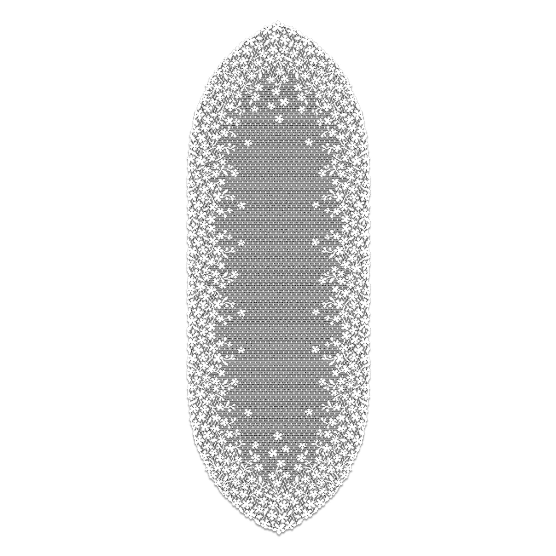 This simple, yet intricate, design has silhouettes of delicate blossoms cascading from the center onto the edges of each piece. Runners are a narrower 12 in width for use on narrow furniture, or layering on top of other wider fabric runners and placemats.