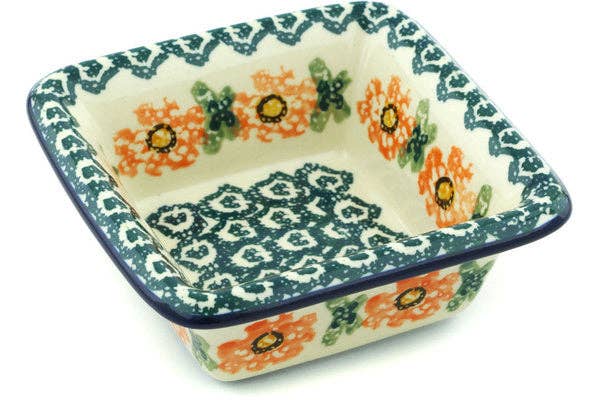 This Meadow Breeze 4" Bowl was handmade and hand decorated in Boleslawiec, Poland by skilled artisans according to old traditional methods. This Polish stoneware is microwave, dishwasher, freezer, and oven safe up to 480°F. It does not contain lead or cadmium. It is part of the Meadow Breeze Collection.