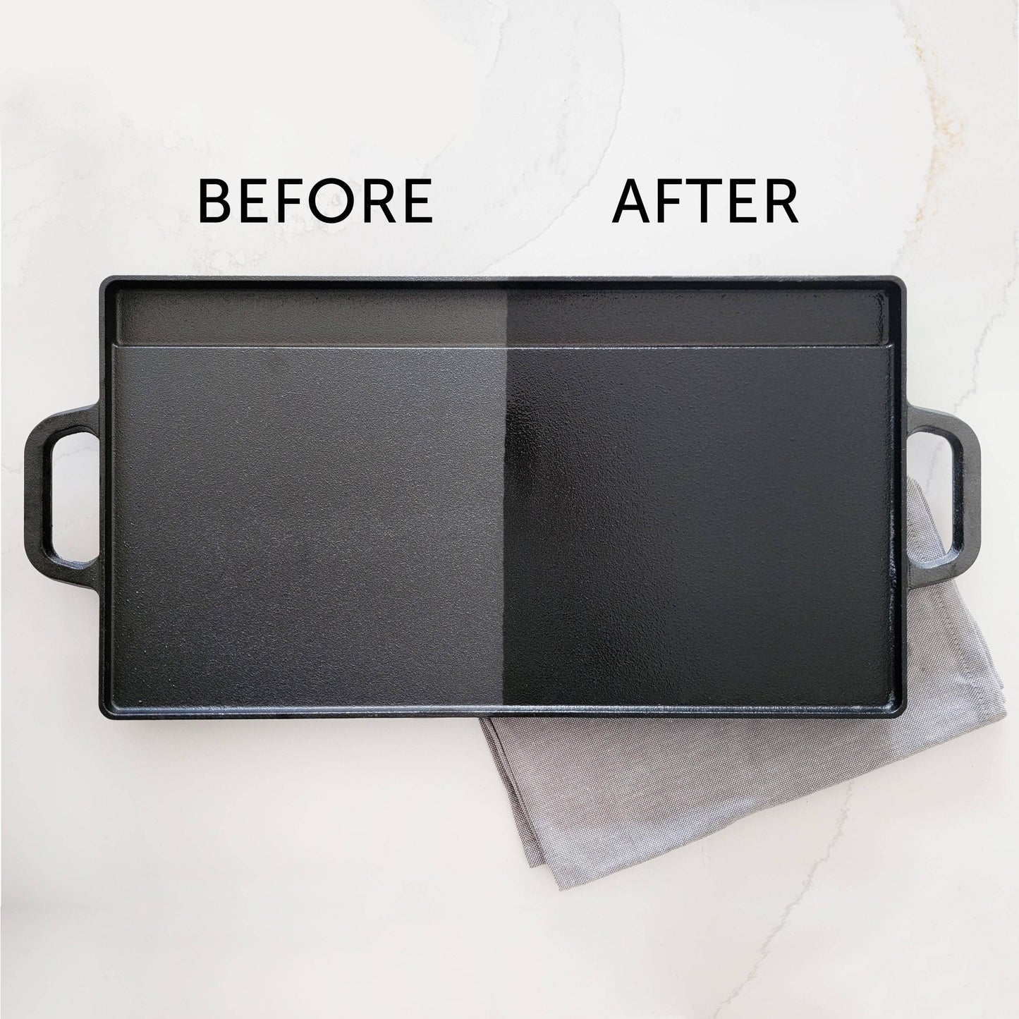 100% plant-based cast iron seasoning and cleaning oil formulated to build and maintain the best non-stick seasoning on your cast iron skillets, pans, woks and grills.