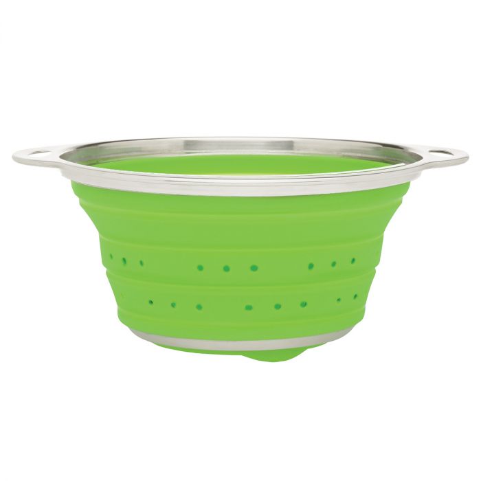 - HIC Kitchen's 1.5-Quart Collapsible Silicone Colander with footed base for rinsing, washing, and draining foods and produce