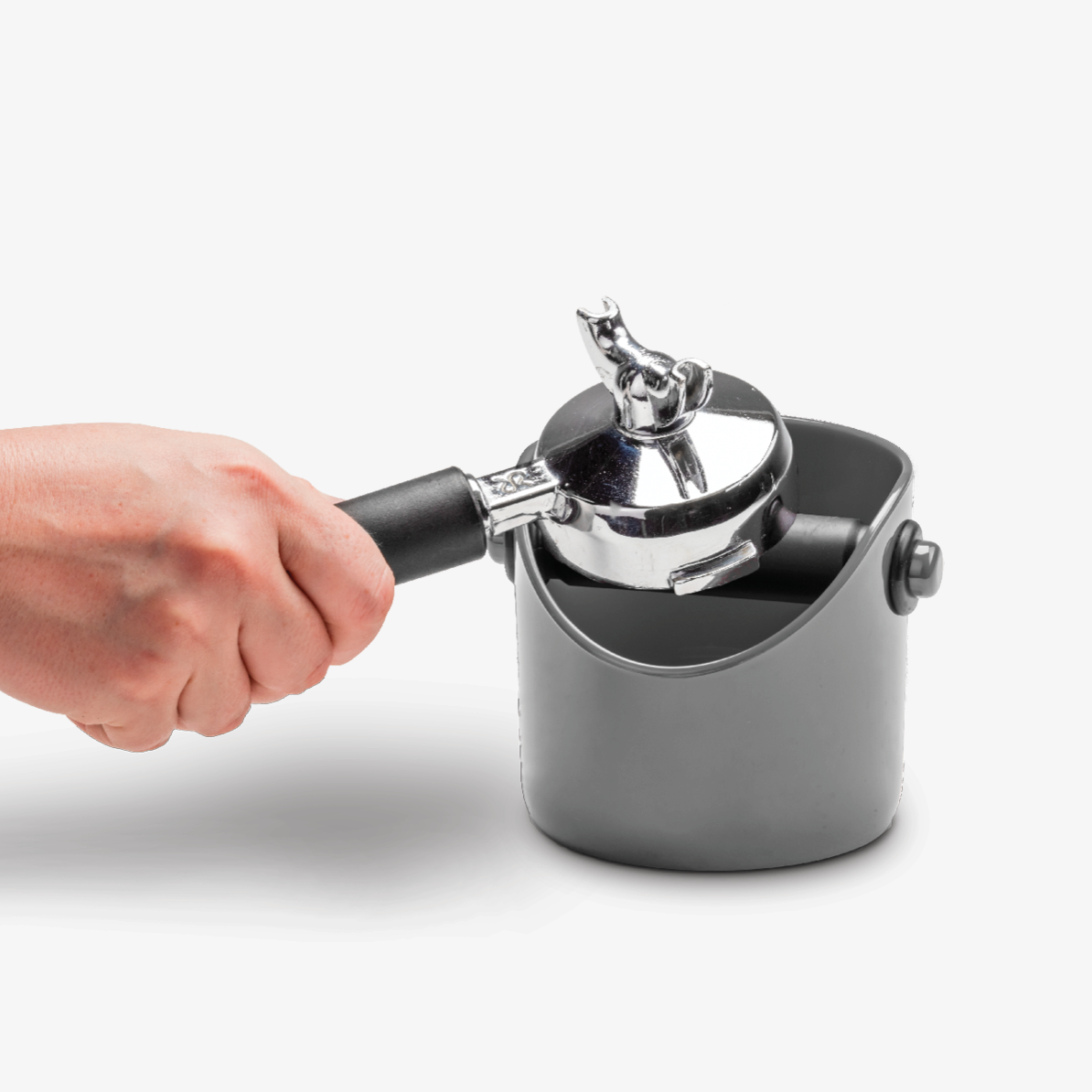 Grindenstein is a compact knock box that bangs out your coffee grounds.