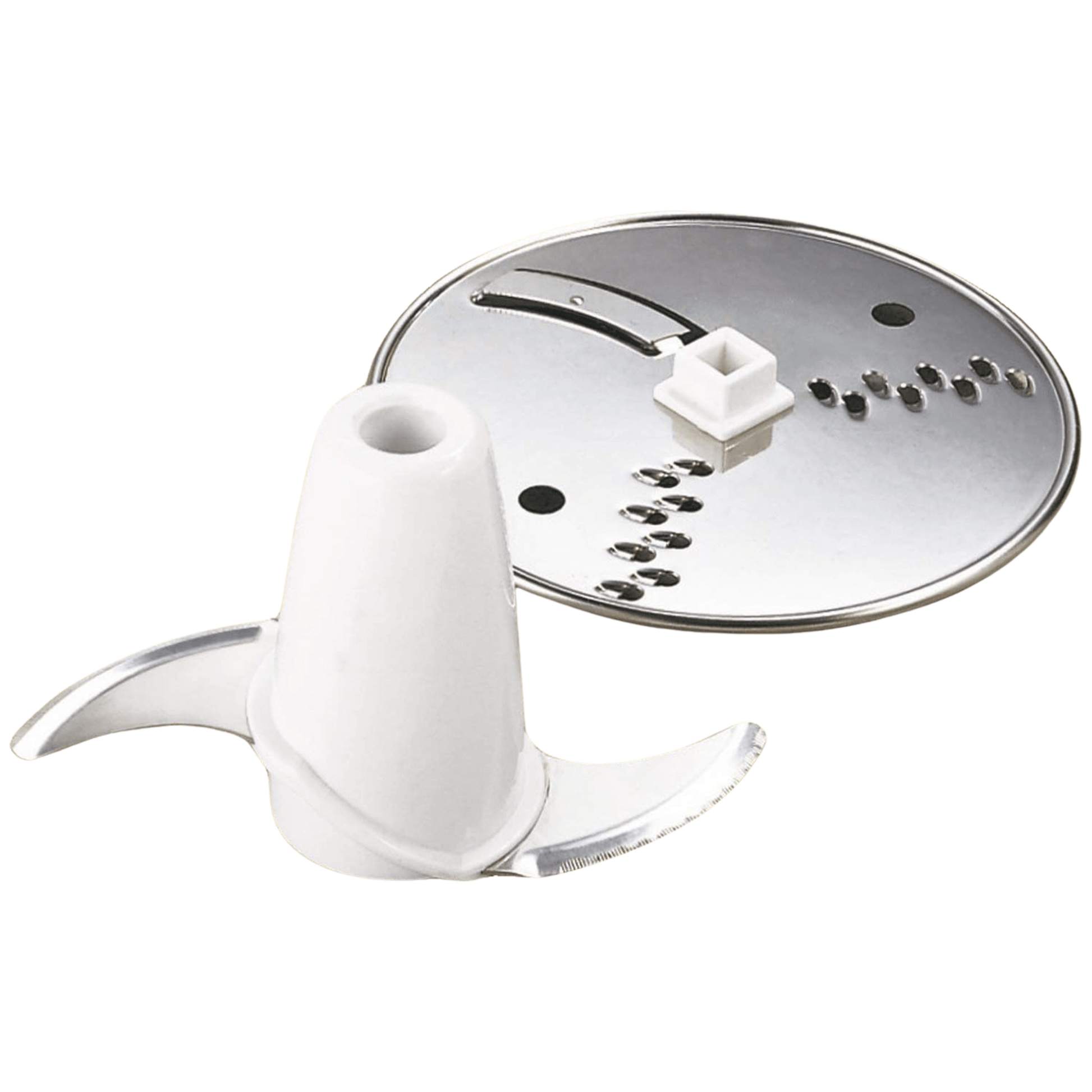 - Stainless steel chopping/mixing blade & reversible slicing/shredding disc