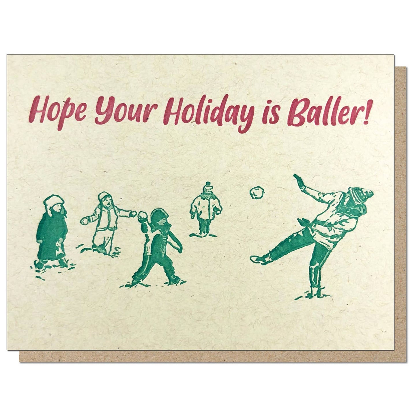 Hope your holiday is ballerThis card is clearly made for you! A2 (5.5x4.25") greeting card, letterpress printed on french paper co. Card stock. Packaged with recycled kraft paper envelope..