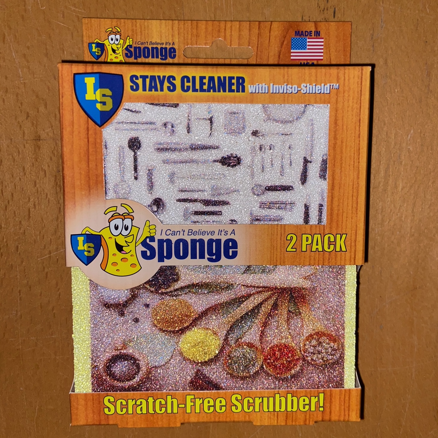I Can't Believe It's A "Sponge", durable double cell foam, non-scratch scrubber that rinses clean and fast, dishwasher safe, made in USA, lasting longer, and looks great in the sink or bathroom. The Inviso-shield™ technology provides a barrier that keeps particles, grease and grime from entering. Making for a cleaner and healthier sponge. The non-scratch scrubber side has been independently lab tested and will not scratch glass, stainless steel, non stick surfaces, granite, porcelain, ceramic dishware or porcelain. The double cell foam polymer construction is incredibly durable, will last a long time and save you money! The sponge is also top rack dishwasher safe!